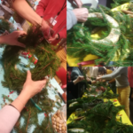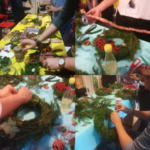 Vous pourrez confectionner une magnifique couronne de porte (qui peut aussi servir de centre de table pour vos bougies de l’avent) avec des matériaux naturels et/ou réutilisables.